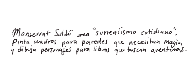 Monserrat Soldu creates "everyday surrealism". She paints for walls that need magic, and draws characters for books seeking adventures.